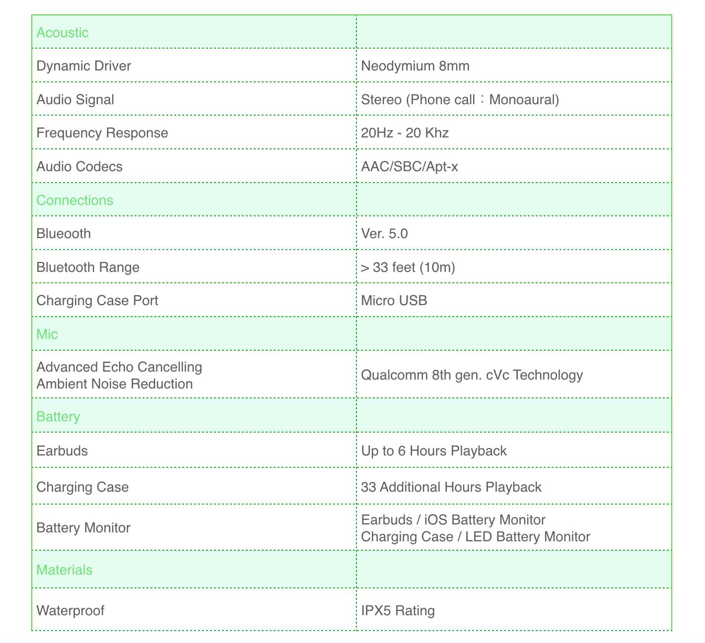 VIE FIT 2 has longer its battery life even the charging case has been redesigned as the much smaller shape. It comes with 6 hours of continuous listening time and 33 hours of playback with the included charging case.